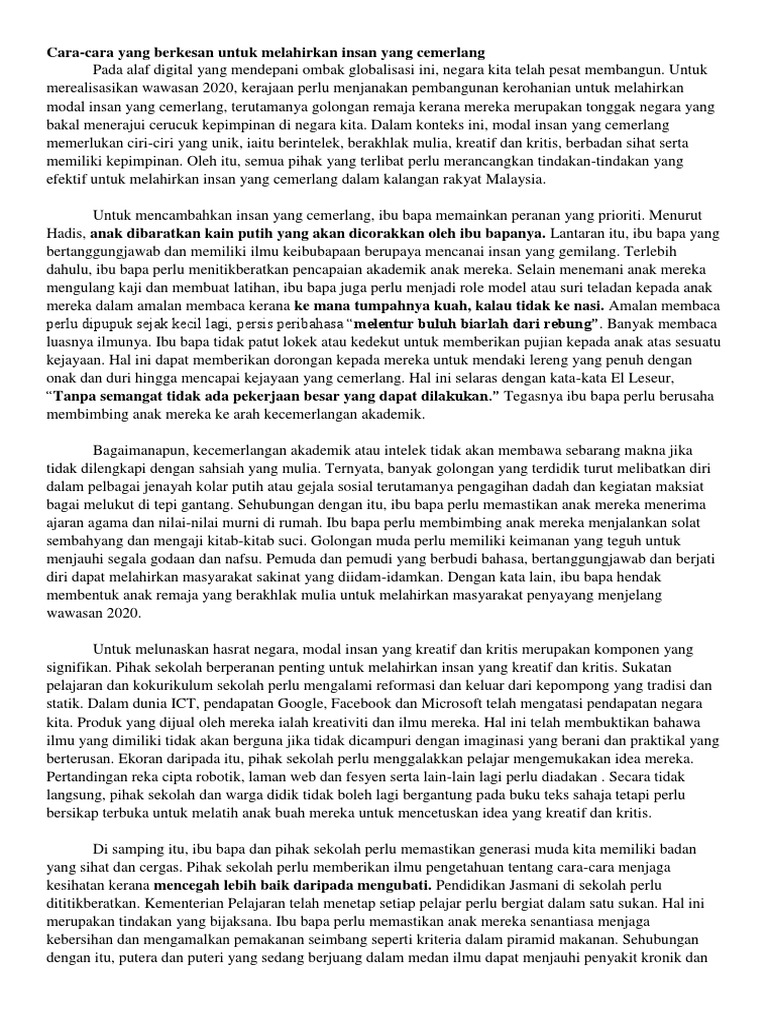 Cara Cara Yang Berkesan Untuk Melahirkan Insan Yang Cemerlang Kelvin Pdf